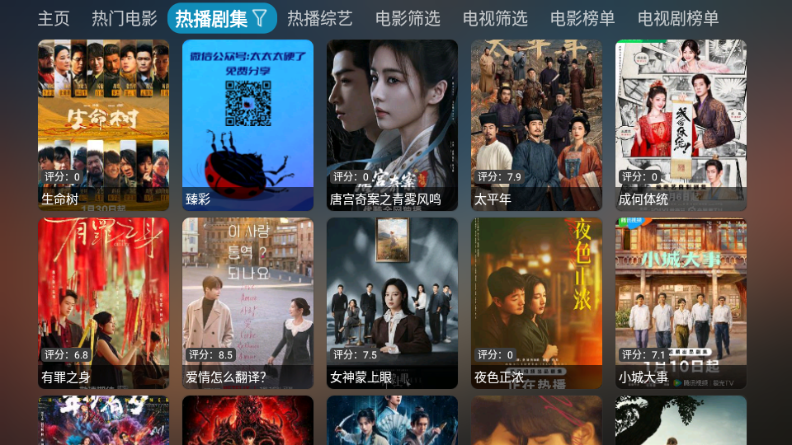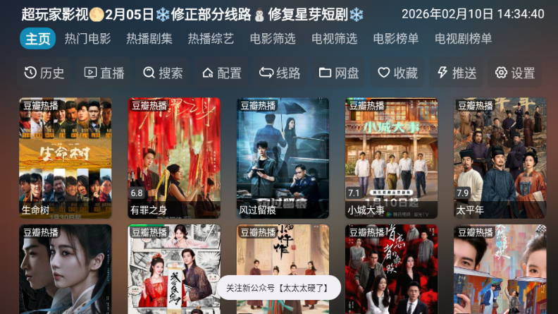 超玩家影视是一款专为智能电视打造的免费影视盒子应用,整合全网优质资源,涵盖电影、剧集、动漫、综艺等全品类内容。其最大亮点在于多源聚合播放——自动整合多个视频源,播放中可自由切换线路,确保稳定性