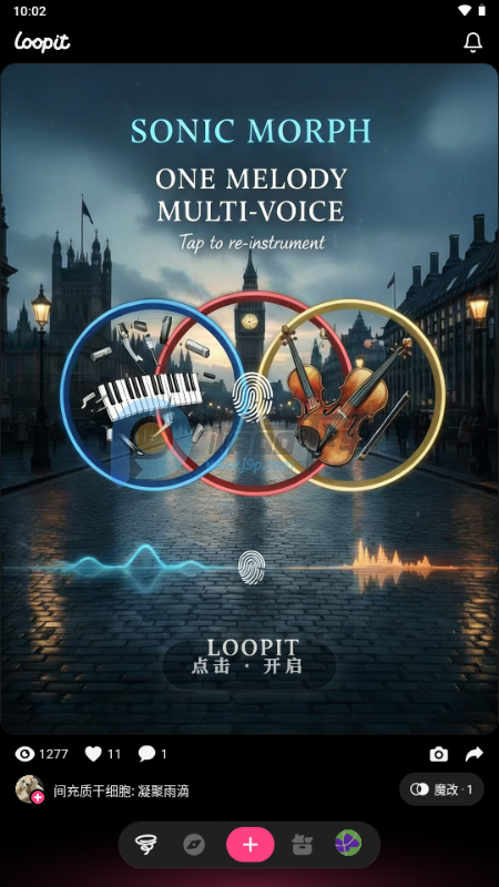 Loopit 是北京涌跃智能科技推出的 AI 互动内容创作平台。用户只需用自然语言描述想法,AI 可生成可玩的互动内容,支持图片、视频、音乐及手机传感器交互(陀螺仪、麦克风、摄像头)。平台支持低门槛创作与魔改(Remix),平均三轮对话完成作品。Loopit 被视为潜在的 AI 时代新型内容社交平台。