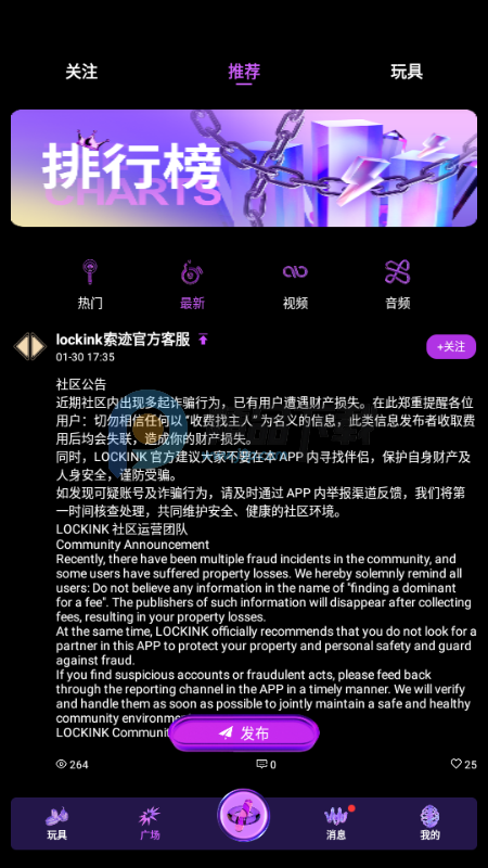 LOCKINK 是一款主打情趣生活体验的智能互动平台,精准贴合用户对情趣用品操控与社交互动的双重需求,将感官刺激、健康关怀与多维娱乐巧妙融合,打造出丰富且新颖的线上享乐体验。作为专业的情趣玩具智能操控平台,APP 核心聚焦优质的设备连接服务。