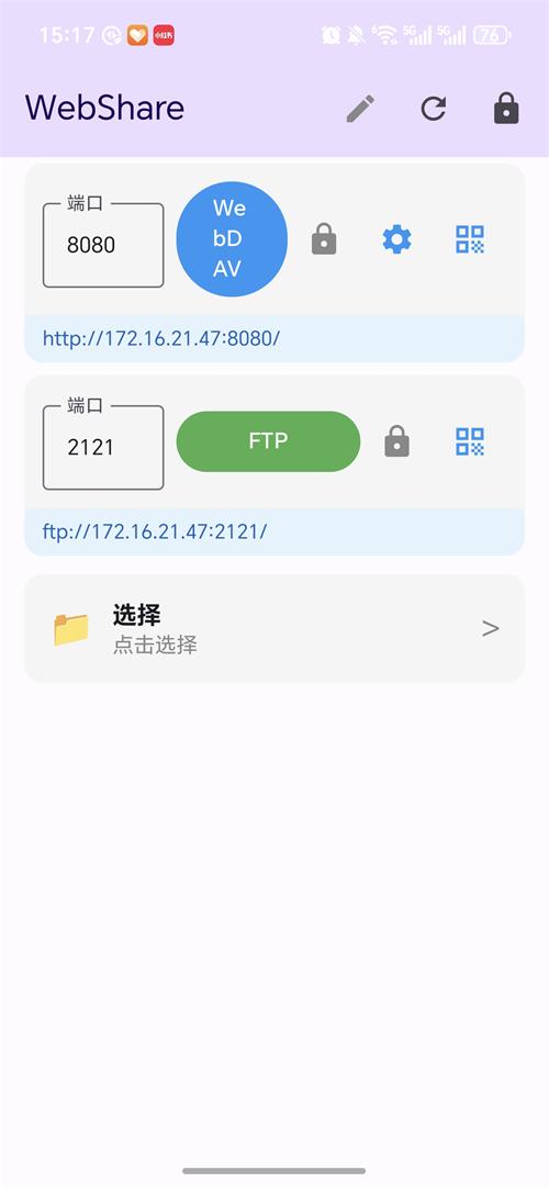 web文件共享工具是由52pj用户自己制作的一款通过webdav和ftp分享手机文件目录到局域网的工具,支持手机传输到手机,手机传输到电脑,还可以通过浏览器来操作访问,快速上传文件,支持将手机上的多个文件夹进行共享。