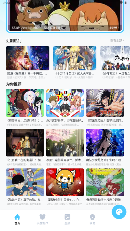 里番动漫app,动漫迷的全方位乐园!它深度解读热门动漫,带你领略精彩剧情与角色魅力。头像制作,海量素材任你搭配,轻松打造个性化形象;自由画板,释放你的艺术天赋,随心所欲地挥洒创意;还有海量高清漫画壁纸,涵盖各类场景,让你的手机屏幕独具个性。里番动漫,一站式满足你的追番、创意需求,打造专属你的动漫世界,让每一天都充满惊喜与乐趣!