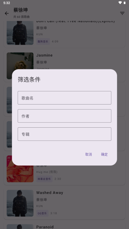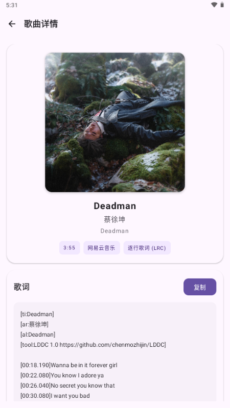 多音乐平台歌词搜索:支持搜索QQ音乐、酷狗音乐、网易云音乐中的单曲、专辑和歌单,支持从Lrclib获取歌词。