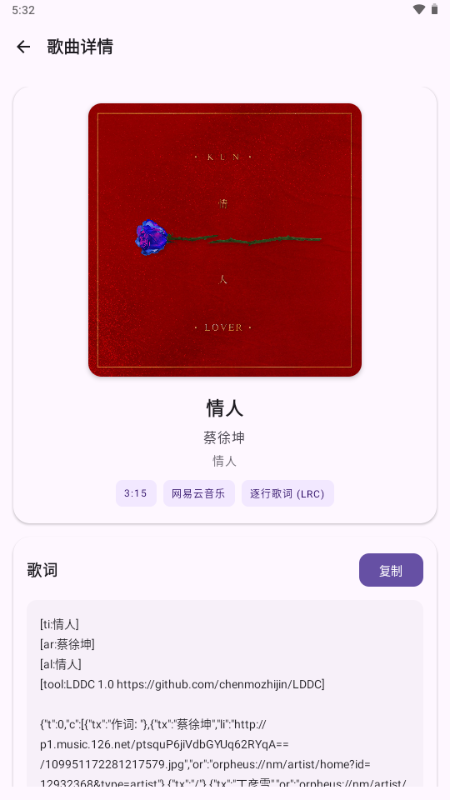 专辑/歌单歌词下载:一键为整个专辑或歌单下载歌词。
