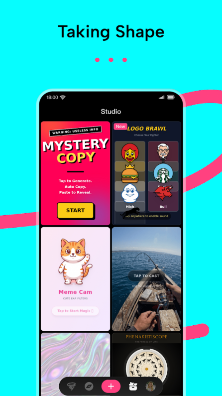 从快速的笑话到令人惊喜的深刻创意:表情包、ASMR 时刻、小游戏、玩具和趣味工具、拼图、互动艺术、模拟。