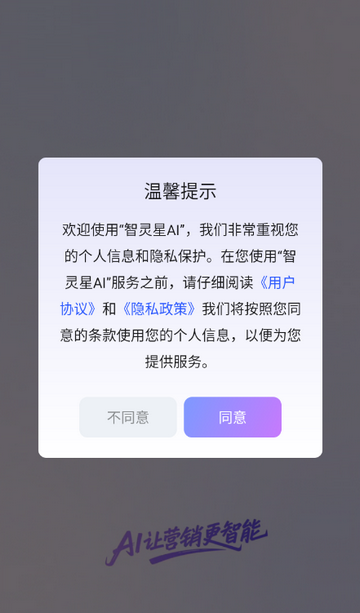 1、打开智灵星AI app,点击同意隐私政策
