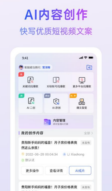 这是一款强大且智能的内容创作工具,采用先进的智能AI技术,为用户提供便利、全面的创作服务,支持轻松实现视频创作、AI二创等操作,拥有完善的创作模式,一站式解决用户创作难题、满足各类创作需求,作品可直接导出使用,能有效提升用户工作效率,为各类有创作需求的用户提供贴心的创作支持。