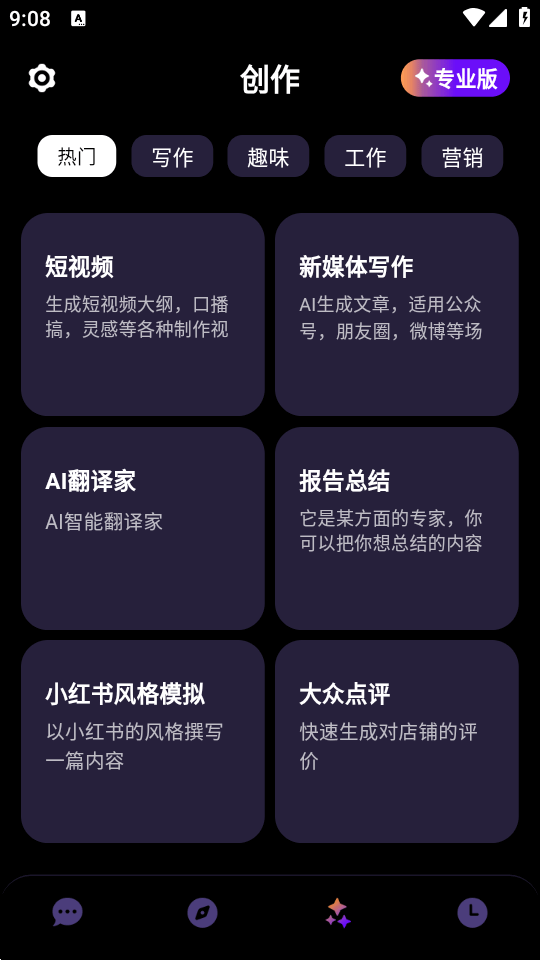 内置Chat5.2Pro大模型的一款先进的ai个人聊天助手软件,G.AI助手专业版,下载安装后即可快速聊天对话,支持自定义聊天风格和模型选择,同时整合了各种创作功能,快速帮你翻译,总结报告,文章润色,作文灵感生成,标题生成,ai文章大纲助手等等,简洁好用,功能非常全。