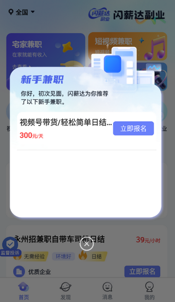 2、进入软件首页,可对你感兴趣的兼职进行报名等