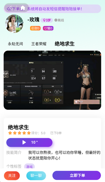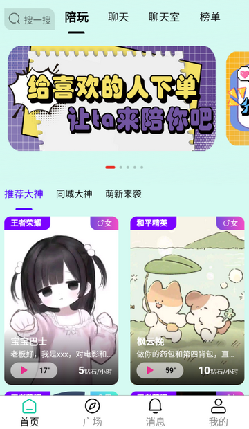 4、既为用户提供陪玩、交友服务,也支持有才艺的用户入驻接单,实现双向赋能。