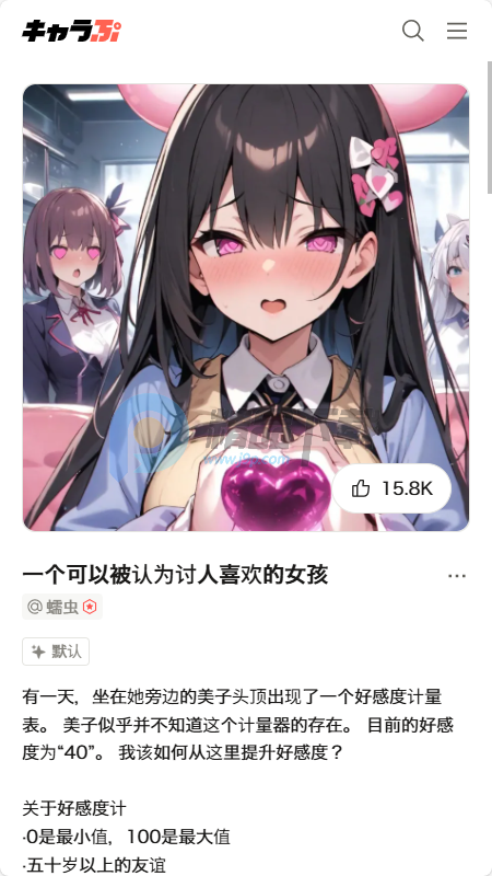 各种各样的 AI 角色,从流行的“浪漫”类型,到游戏、幻想、战斗和日常生活类型,都在等着您来认识!随意享受所有类型的AI角色内容。