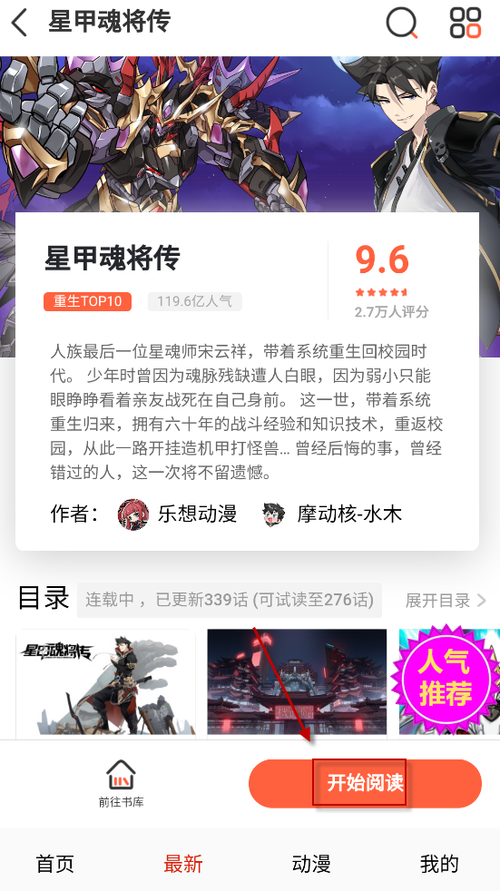 2、进入漫画详情页后点击底部的“开始阅读”选项。