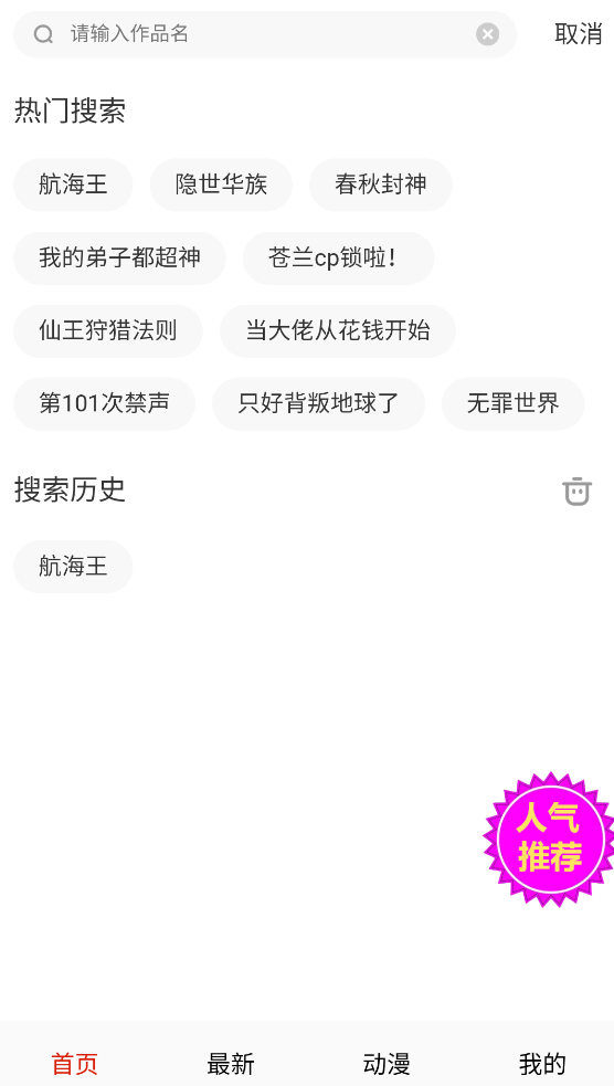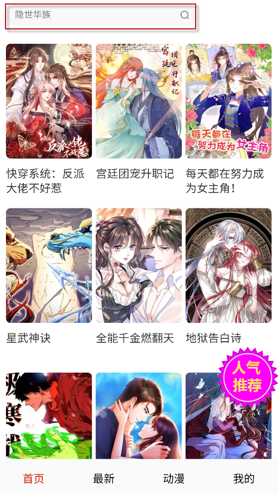 2、接着在主页搜索框内,输入正确的漫画名称或者关键字。