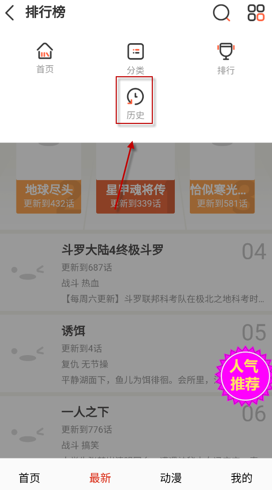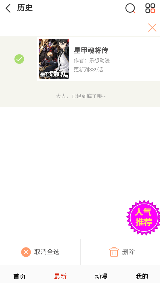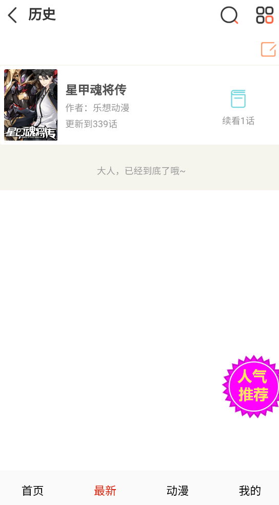 3、在这里可以看到浏览过的漫画,还有观看章节记录。