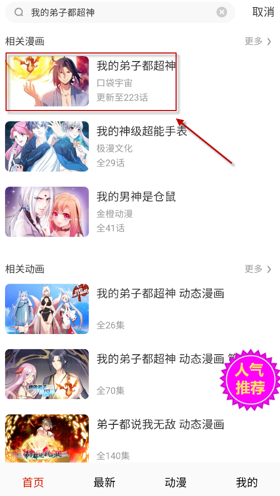 3、点击确定之后,就可以找到对应的漫画搜索结果。