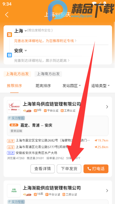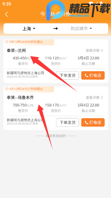 1、点击输入货运物流的起终点