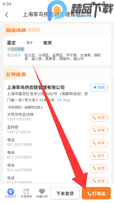 3、点击打电话对物流公司进行咨询