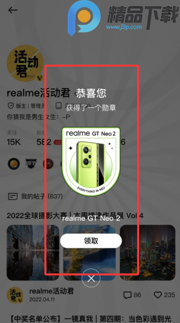 2、参与官方发布的活动还可以获得社区专属徽章