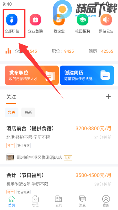 1、在首页点击全部职位