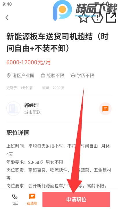 4、查看职位详情后点击申请职位