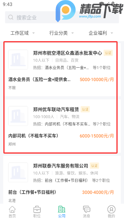 5、也可以按照公司来筛选工作