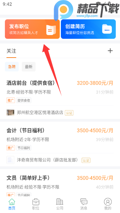 1、在首页点击发布职位