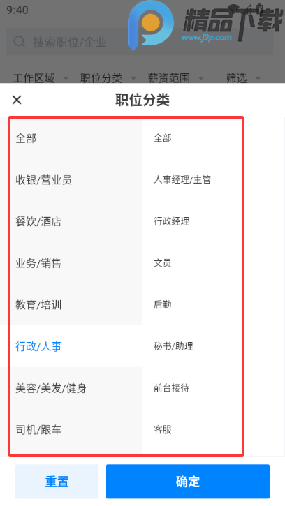 3、选择自己意向的职位分类
