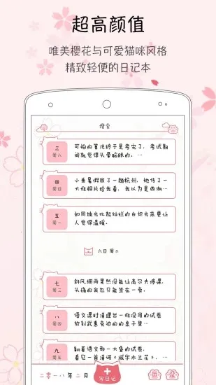 1. 粉萌日记充满少女心风格,清新可爱的樱花与喵喵风格直接击穿少女心,深受广大女性用户喜爱。