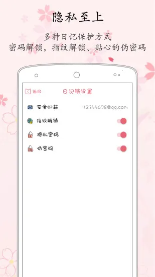 4. 有指纹解锁、密码解锁、伪密码三种锁保护隐私