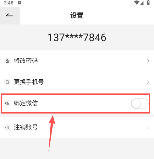 4、最后将绑定微信的快关打开即可,默认是关闭的