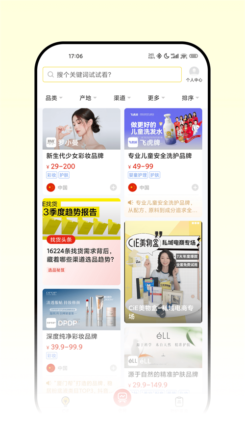 品观已改名为CiE美妆创新展app是品观科技武汉有限公司发行的美妆购物软件,有各类美妆商品且质量有保障。还为从业者提供全方位产业信息服务,如新闻聚合、找货平台、知识培训、会展服务等,功能丰富,能满足多样需求。
