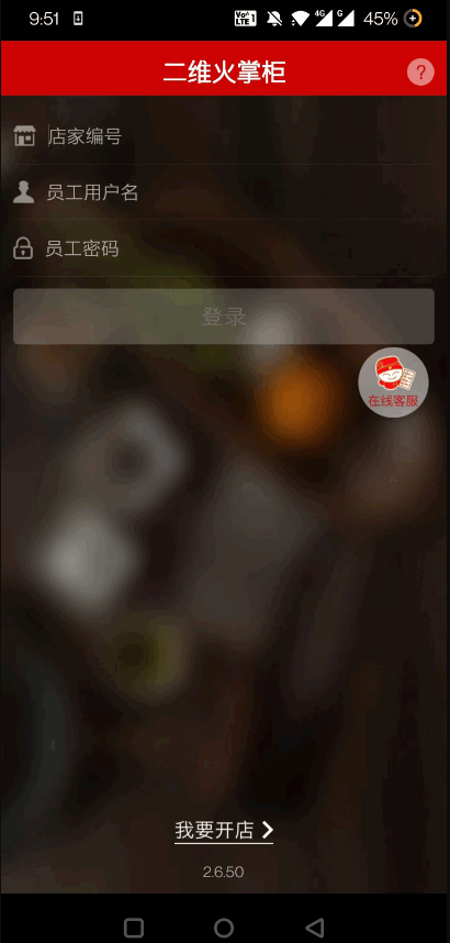 1、进入到app后,会显示两个功能选项:我要开店、管理我工作的店,选择第一个;