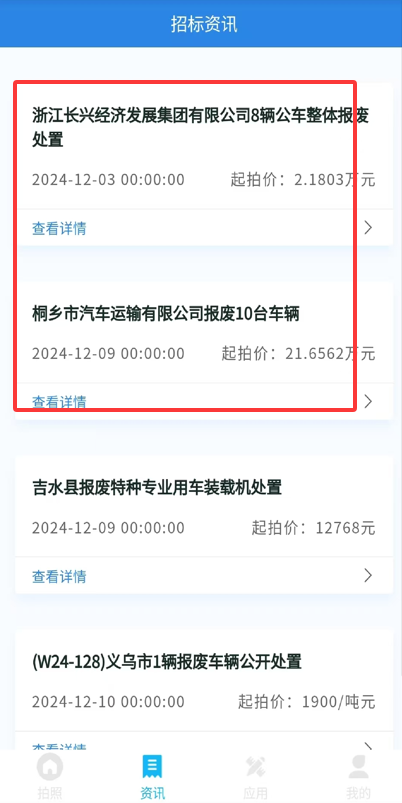 2、查看最新发布的报废车辆招标项目
