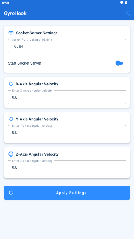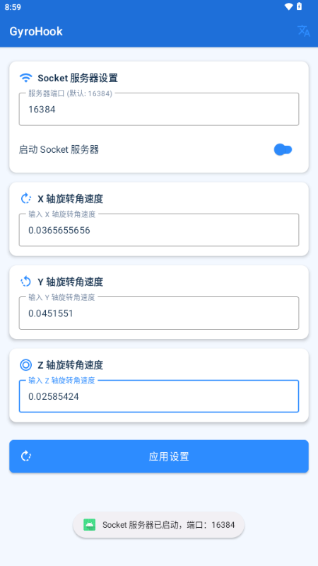Socket 通信: 安卓应用可以启动一个 Socket 服务器,接收外部发送的陀螺仪数据并更新设置。