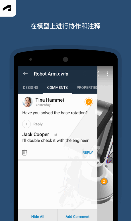 2. 可随时随地查看和协作处理CAD模型,与团队、客户、合作伙伴等灵活共享设计。