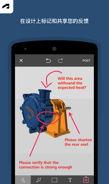 3. 能直接通过应用程序共享设计的屏幕截图与标记,便于交流沟通。