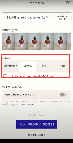 3、将几十张照片进行处理,选择最后生成模型的质量