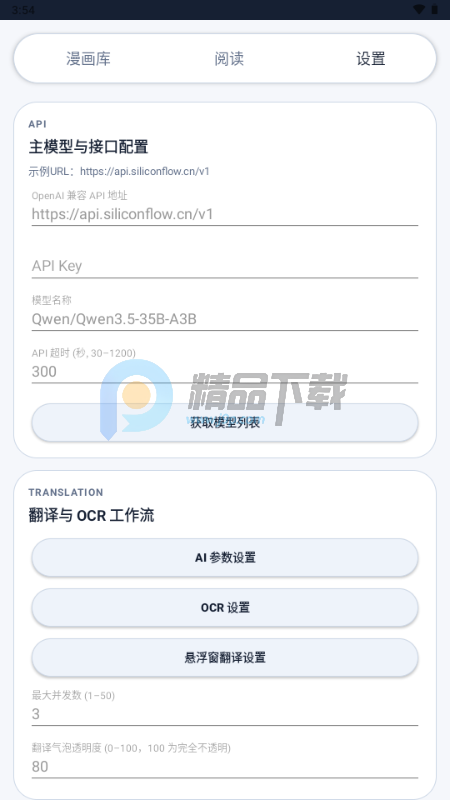 本软件需要自备API来进行漫画翻译