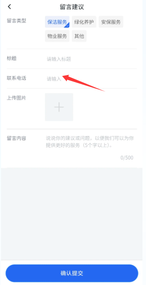 3、输入留言的类型和需要提交的反馈