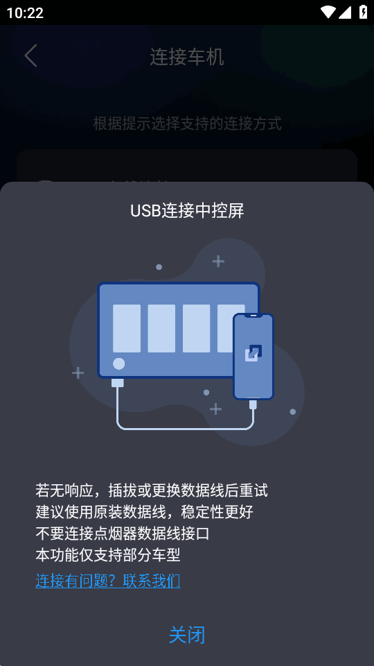 c、启动亿连驾驶助手用数据线连接手机和车机,手机进行USB调试后,即可实现手机互联。