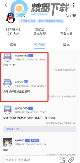 1、查看评论可以看到其他用户分享的老版本