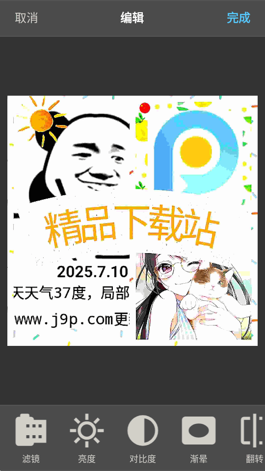 4、进入编辑页面,可以操作滤镜,亮度,对比度等参数。