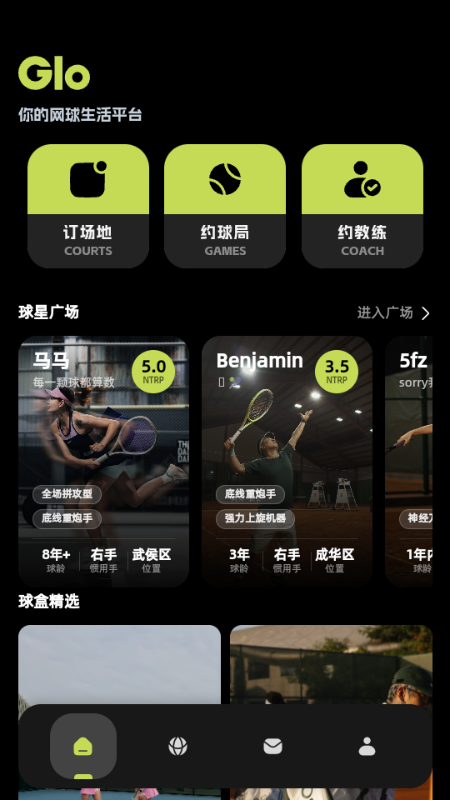 球盒(GloBox)是一款致力于革新国内网球运动体验的移动应用。作为一站式综合平台,我们不仅整合了分散的球场资源,让用户能便捷预订「Away球场」或独家合作的「Home球场」,更提供专业的教练预约服务。在这里,每位球友都拥有个性化的「球星卡」主页,可以在内置的社交媒体上分享图文视频、参与互动,并通过独特的「约球发帖」系统轻松找到球伴。搭配功能完善的即时聊天与专为场地管理者设计的「商家版」工具,球盒旨在连接网球生态中的每一个环节,打造从预订、社交到成长的完整闭环,让热爱轻松落地。