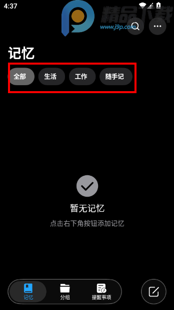 1、在记忆碎片中选择分类