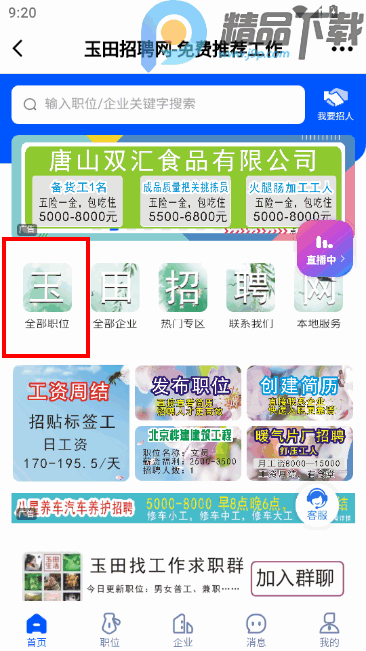 1、点击玉田招聘网-全部职位