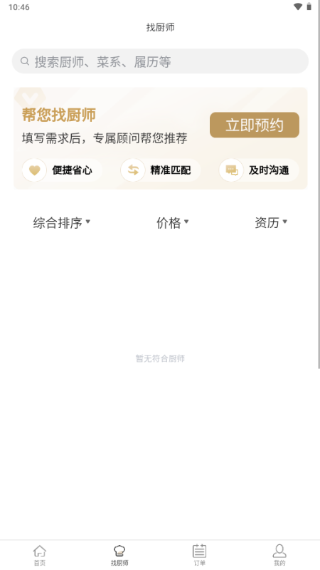 2、进入【预约厨师】界面,选择心仪的厨师进行预约。