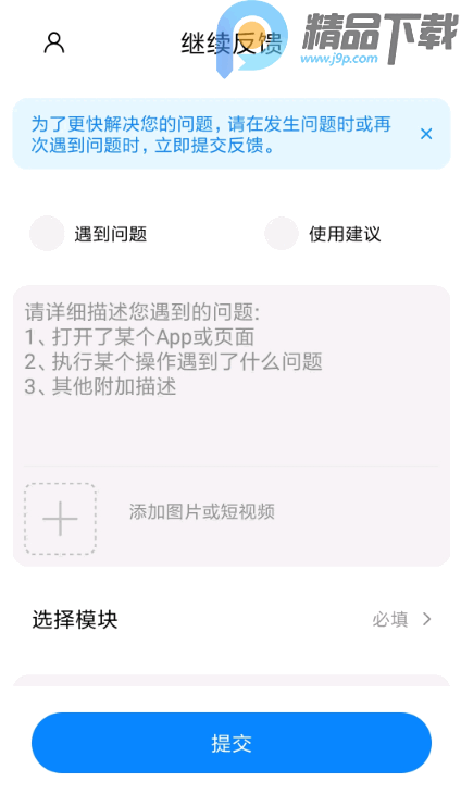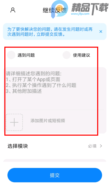 1、选择问题反馈的类型