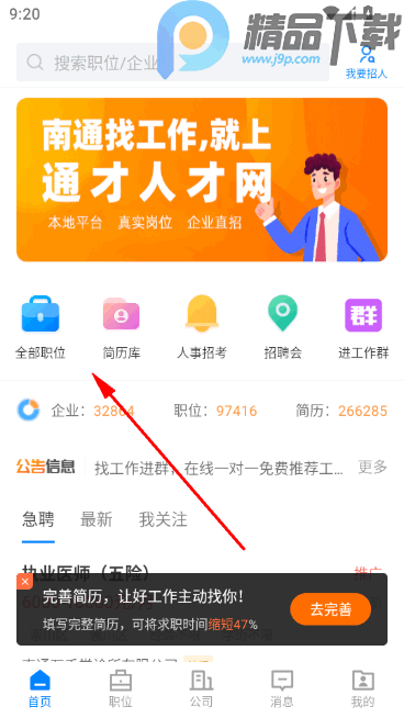 1、首页点击全部职位