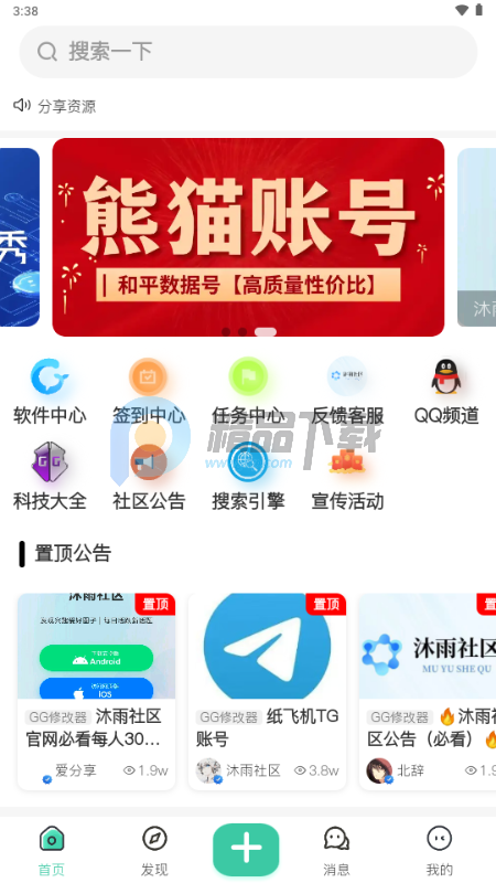 沐雨社区5.0是免费资源共享社区,有各类应用软件和游戏工具,分类清晰。能内部交流、分享资源,自动推荐相关内容,有完整文件管理功能,论坛可互动,用户分享可获积分,还能上传资源、发帖求助,玩机便利。