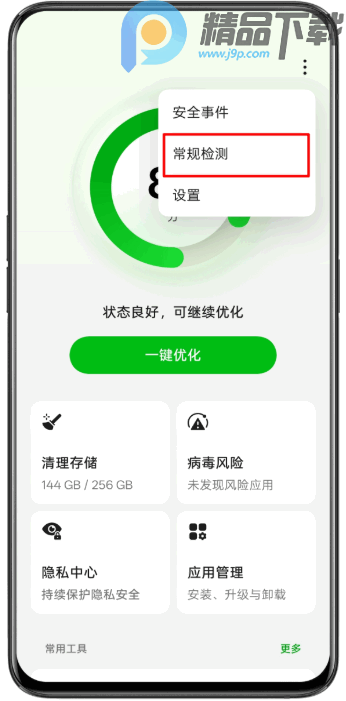 1、在手机管家app中有常规检测的入口