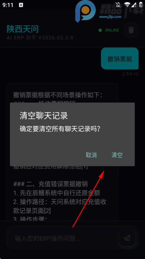 2、点击右上角的垃圾桶可以清空聊天记录
